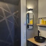 Diese Unterkunft verfügt über ein Badezimmer mit einem Haartrockner, einem Wäschetrockner und Handtüchern. Außerdem gibt es eine Dusche usw.